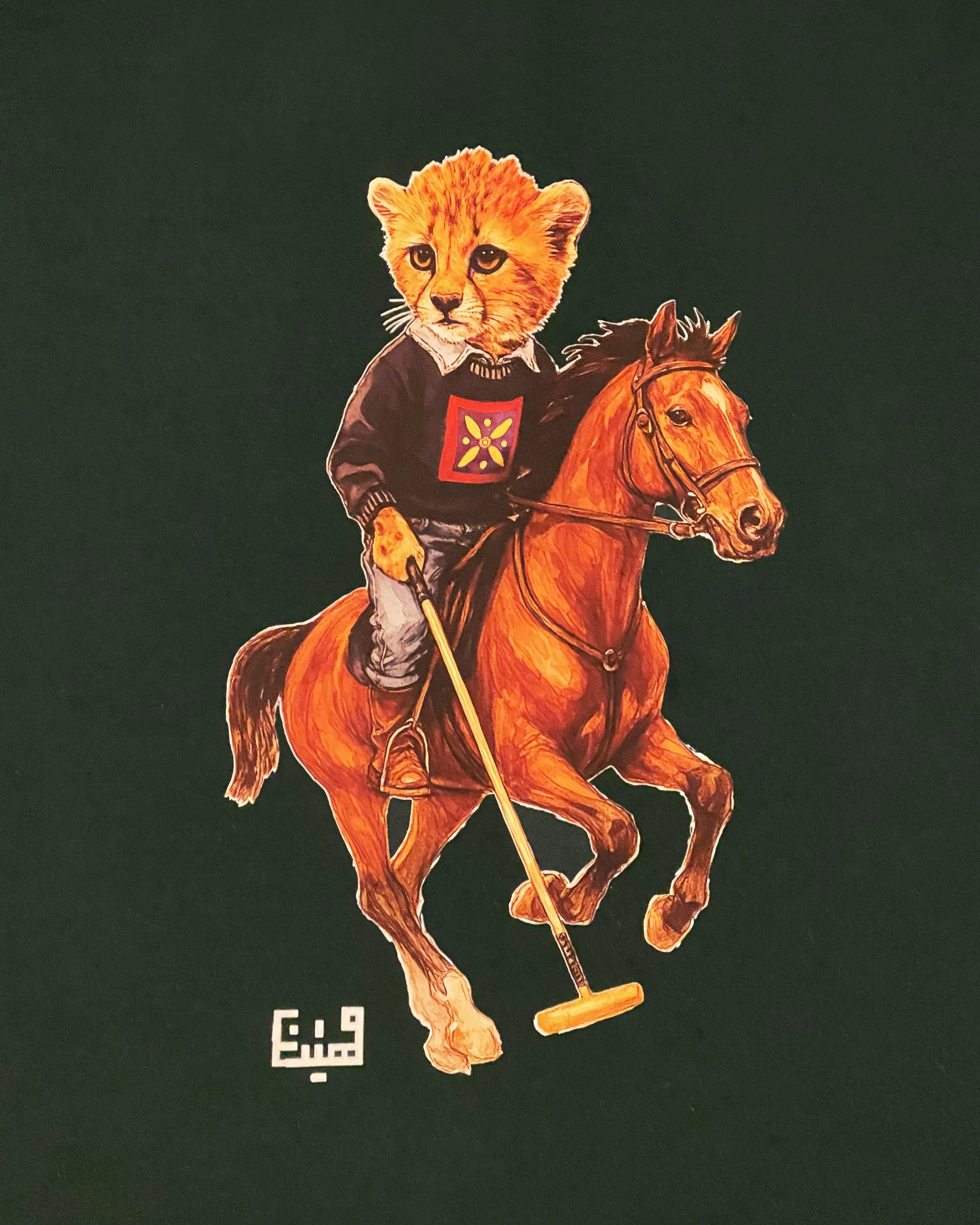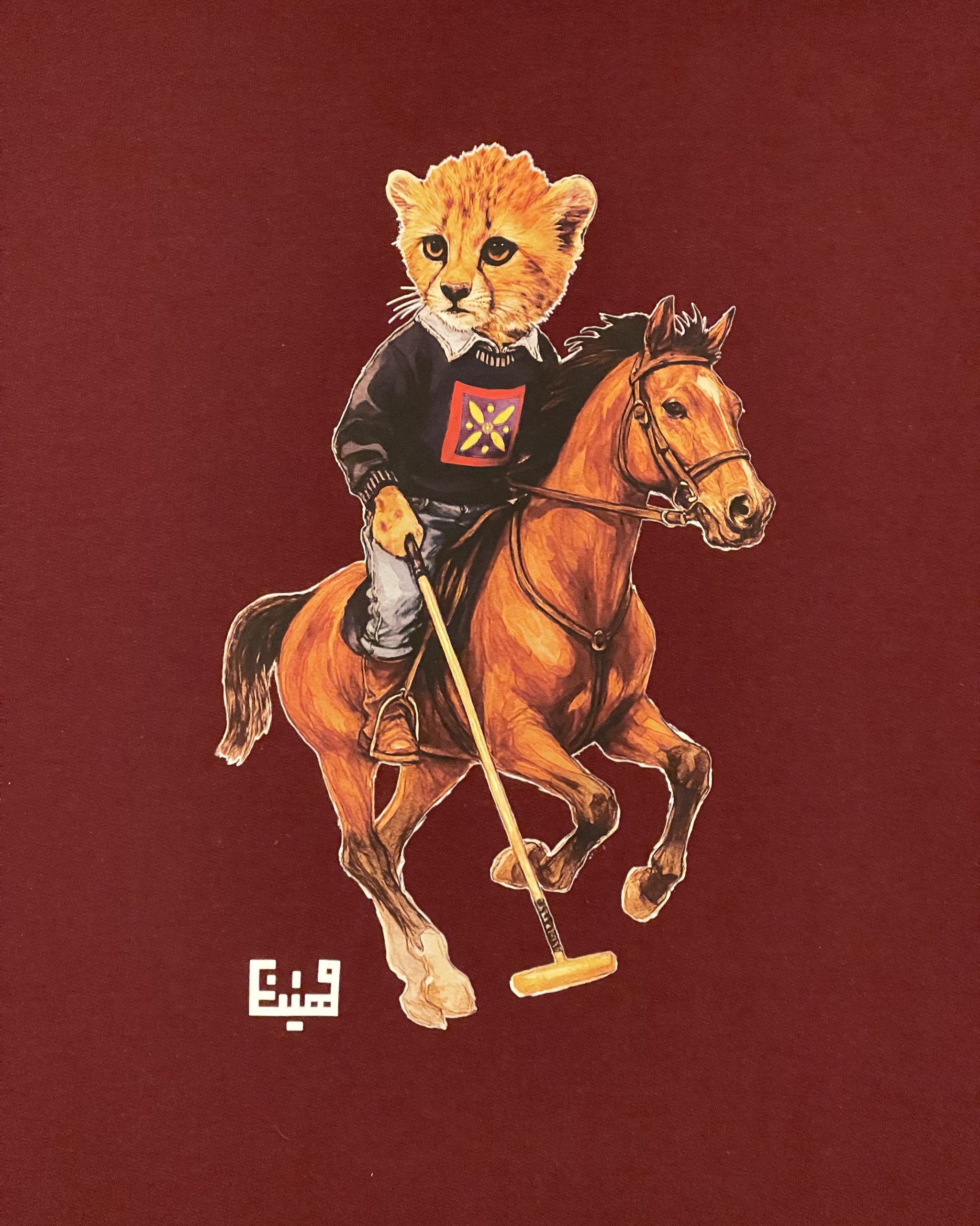 - طرح پیروز در حال بازی چوگان بصورت چاپ روی جلوی لباس